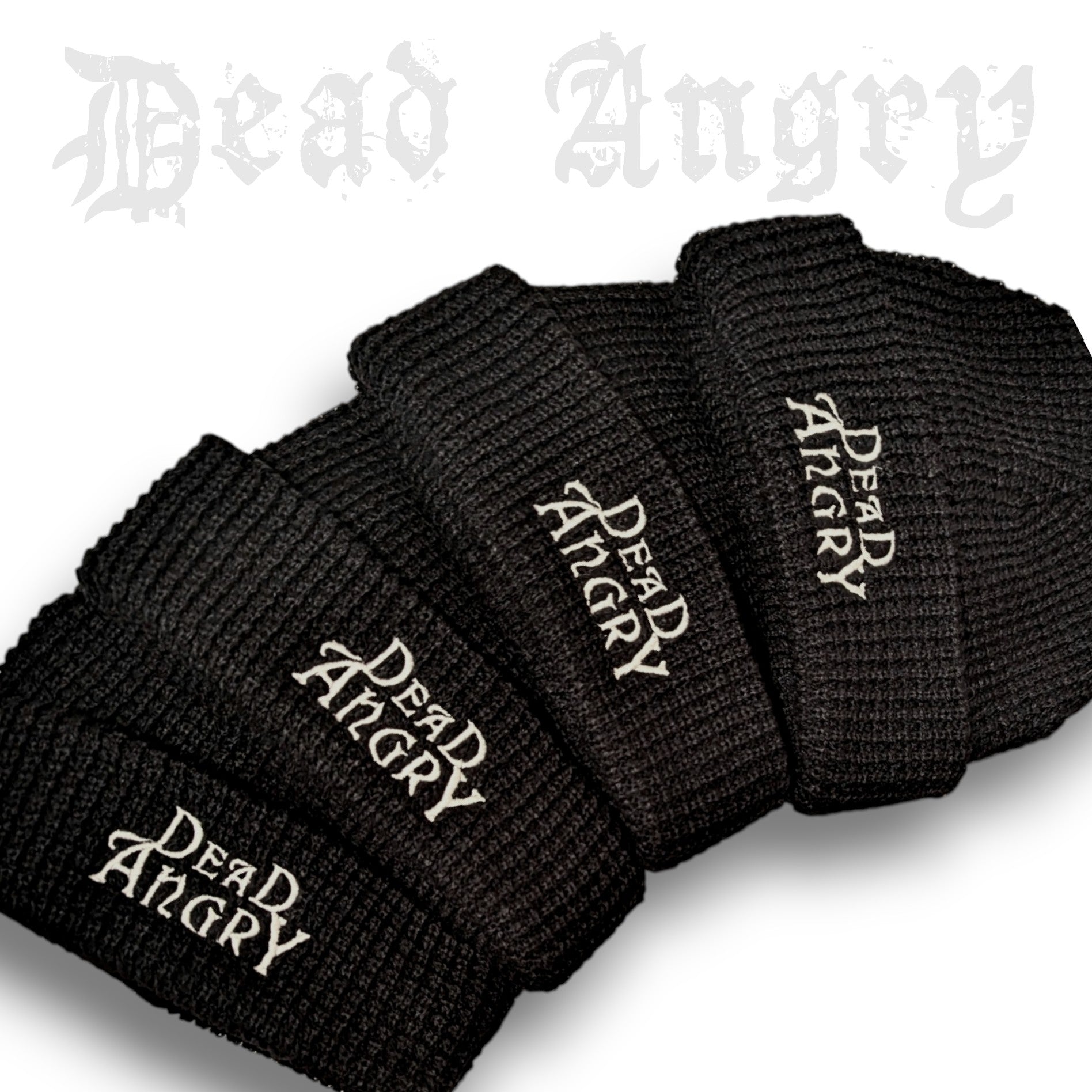 Classic heavy weight double layer waffle knit beanie embroidered with the Dead Angry Logo.