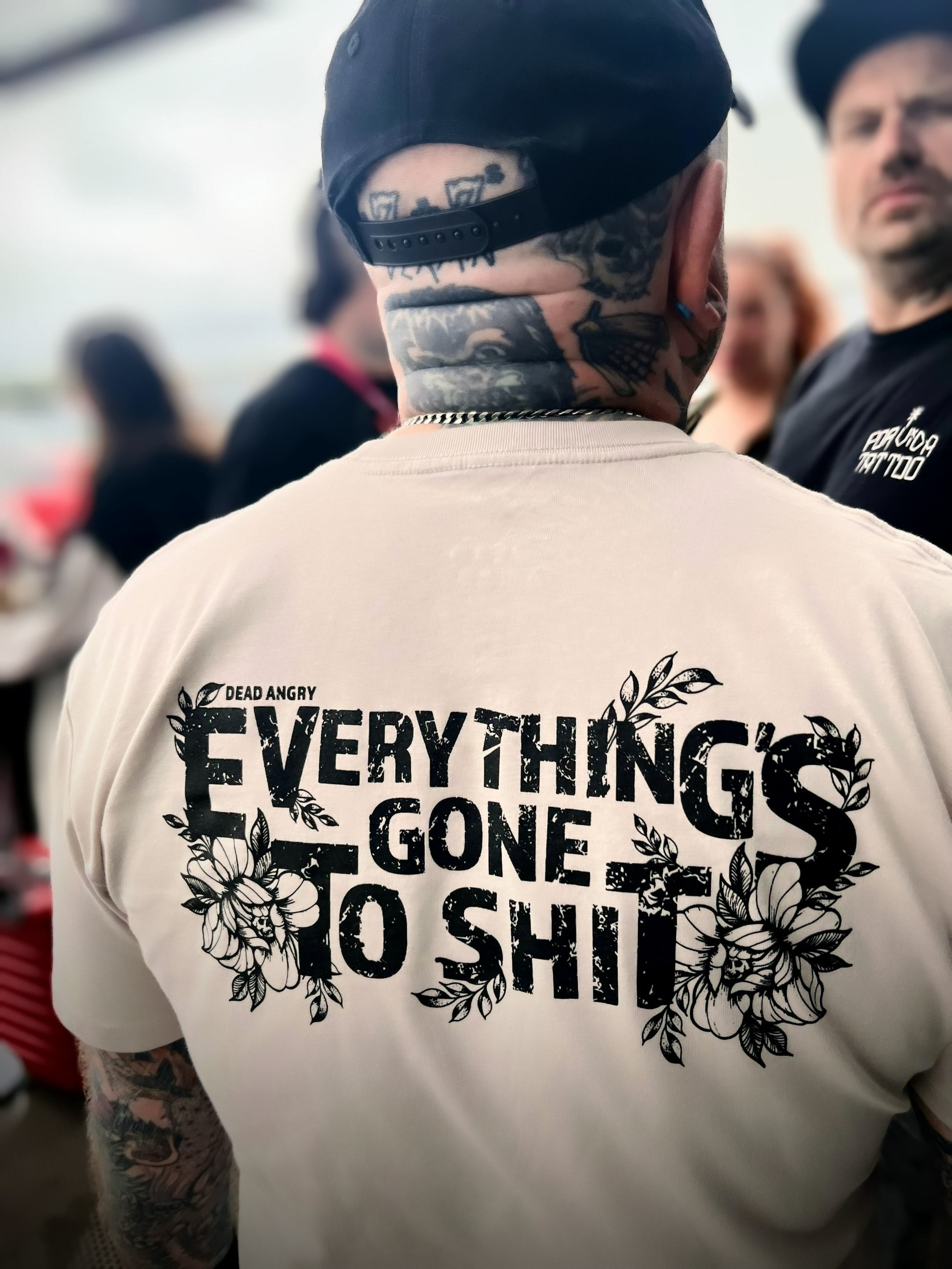 Our brand new Gone to Shit Tee has arrived! Screen printed in house on our premium bone coloured tee with back print design and left chest pocket print