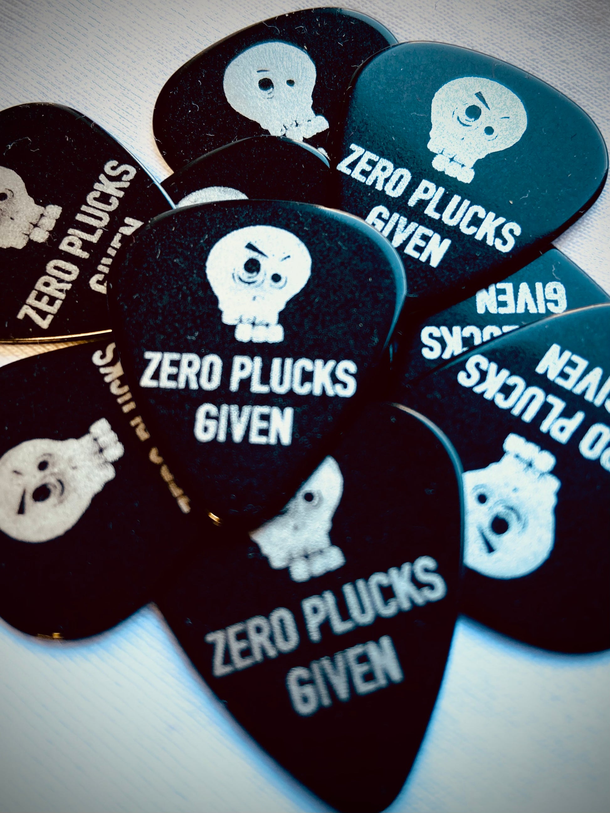 If you're musically inclined and you fancy a triangular shaped piece of plastic you can use to bang out some tunes, check out our "Zero Plucks Given" guitar plectrums. They may make you play better